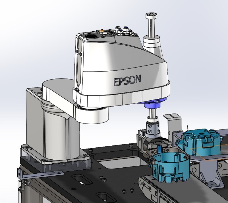 This project transitioned a labor-intensive manual process combing two metal brackets with an injection molded part using two screws into a fully automated solution. By boosting efficiency, we reduced operator workload and redirected that capacity toward managing new automated systems